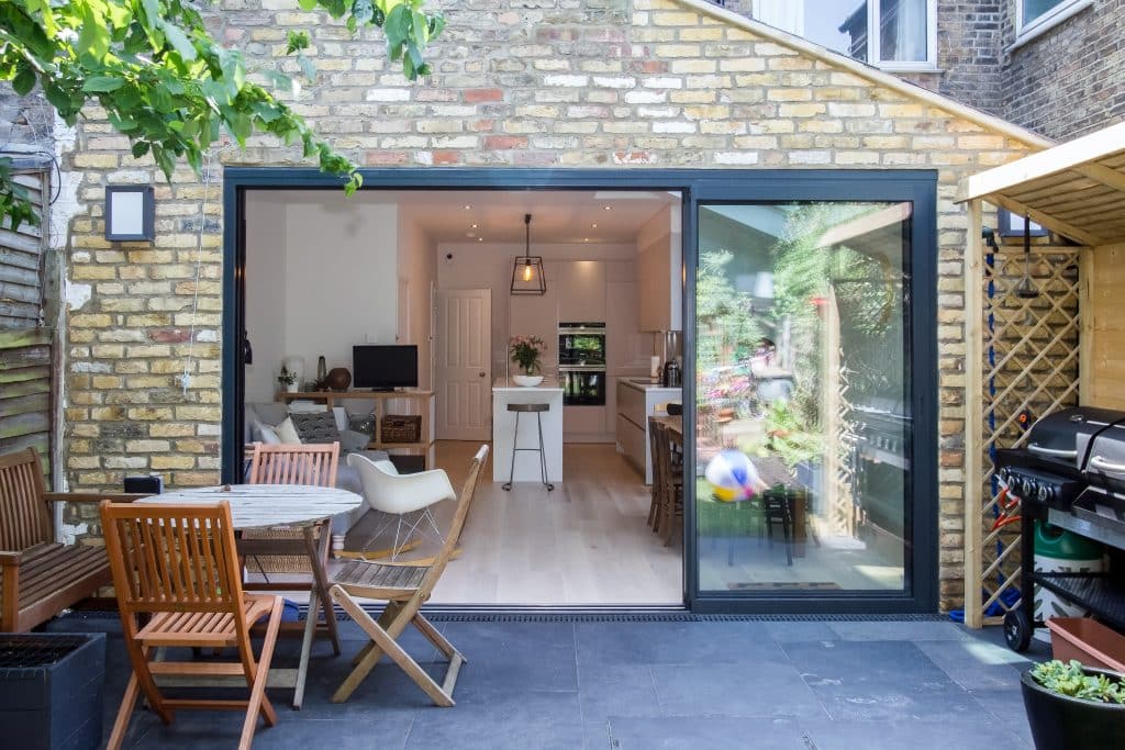A stunning example from our portfolio that has achieved exactly that, is a semi-detached property in Surbiton. We removed a number of walls and installed steel beams to support the original structure, allowing us to extend the rear of the house into a spacious kitchen diner with a separate study and playroom. Our clients can now choose if they want to fully open their fresh ground floor space to connect it with their living room or close it off to create a cosy family room. The entire space has been designed to welcome in plenty of natural light and the newly created rear patio can be easily accessed.